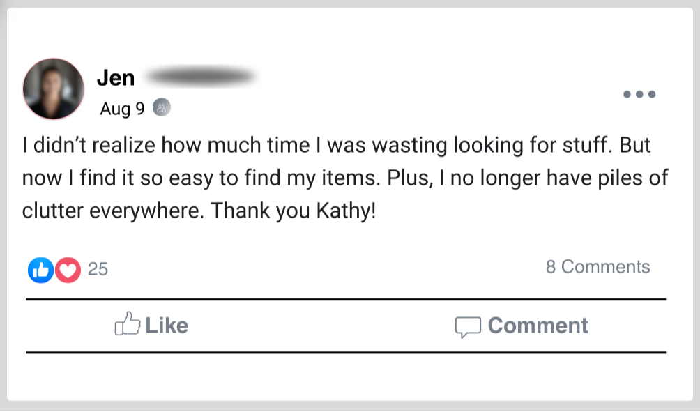 - You love your clutter-free organized home and enjoy the satisfaction of knowing it finally works for you.